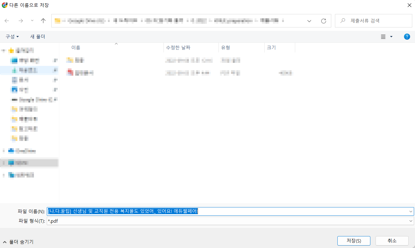 PDF로 저장하기를 누르면 '가.' 단계에서 저장 위치를 설정하던 화면과 동일한 화면이 출력됩니다.